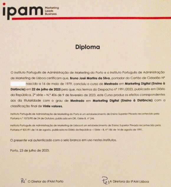 Encerrei hoje a minha jornada no IPAM com o levantamento do Diploma do Mestrado em Marketing Digital, e deixo agradecimentos públicos especiais.