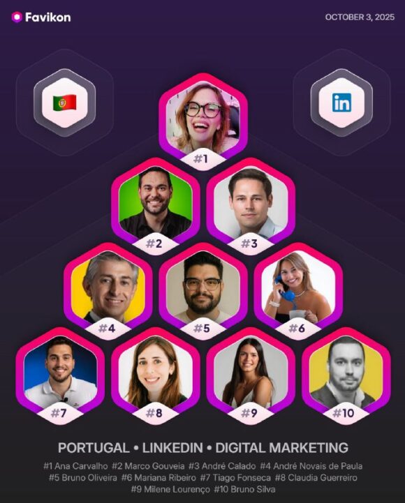 TOP 10 de personalidades mais influentes sobre Marketing Digital no LinkedIn em Portugal (Favikon)