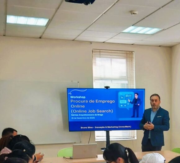 No âmbito da Responsabilidade Social da InnovMark, ministrei ontem de tarde (16 de Dezembro 2025) um Workshop sobre Procura de Emprego através da internet, dirigido a beneficiários de projetos de Intervenção Social da Cáritas Arquidiocesana de Braga.