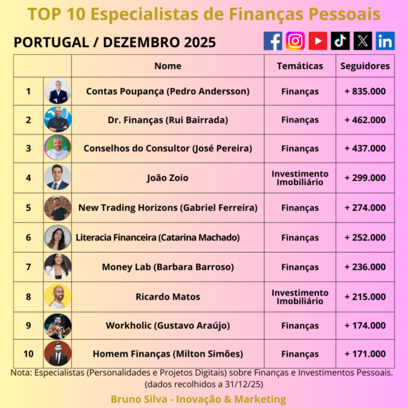 TOP 10 Especialistas de Finanças Pessoais (Portugal / Dezembro 2025)