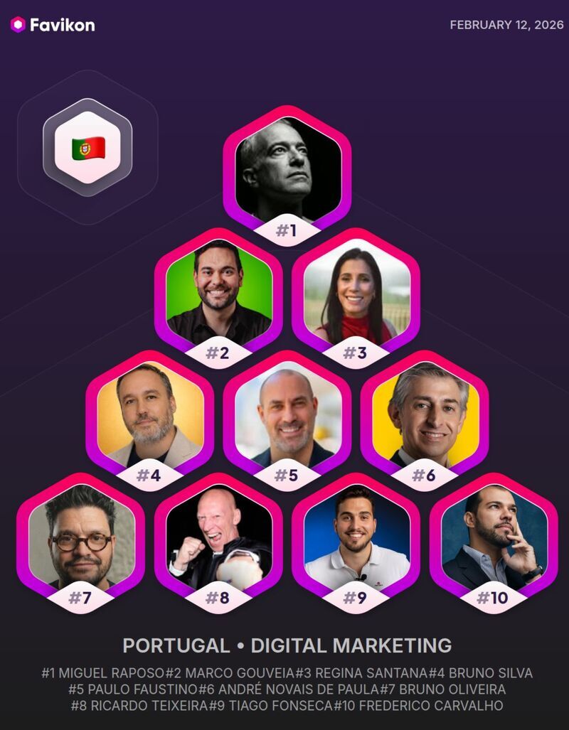 TOP 10 de personalidades mais influentes sobre Marketing Digital nas plataformas de Social Media em Portugal (Favikon) (Fevereiro 2026)